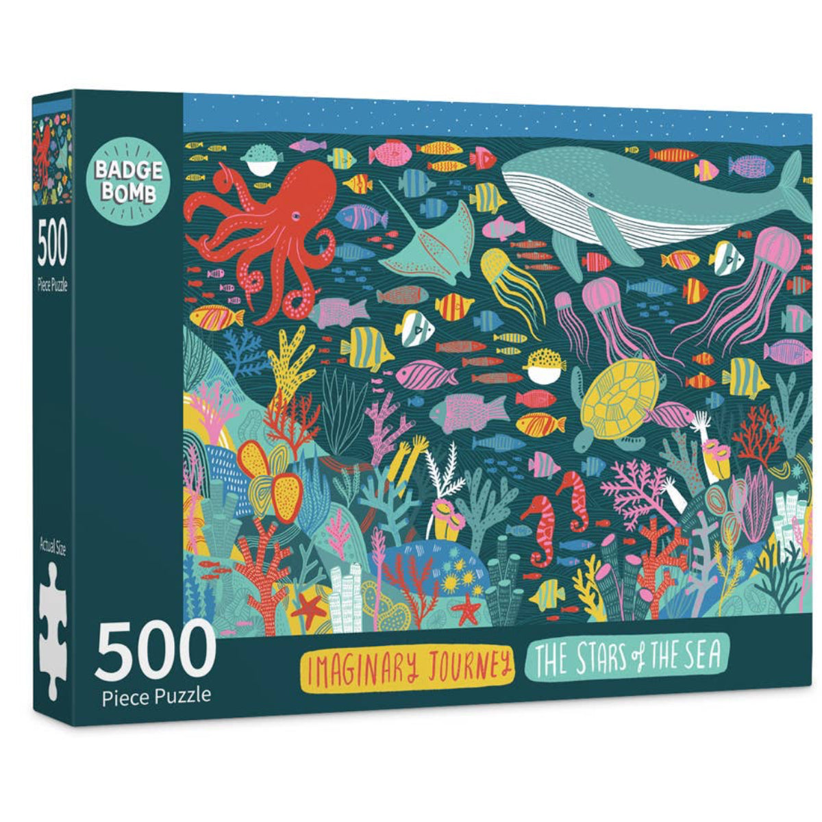 The third illustration in our Imaginary Journey puzzle series by Kate Sutton, a UK-based artist who finds inspiration from her journeys in nature. Deep in the Pacific, the night life of marine life provides the setting for this original illustration.